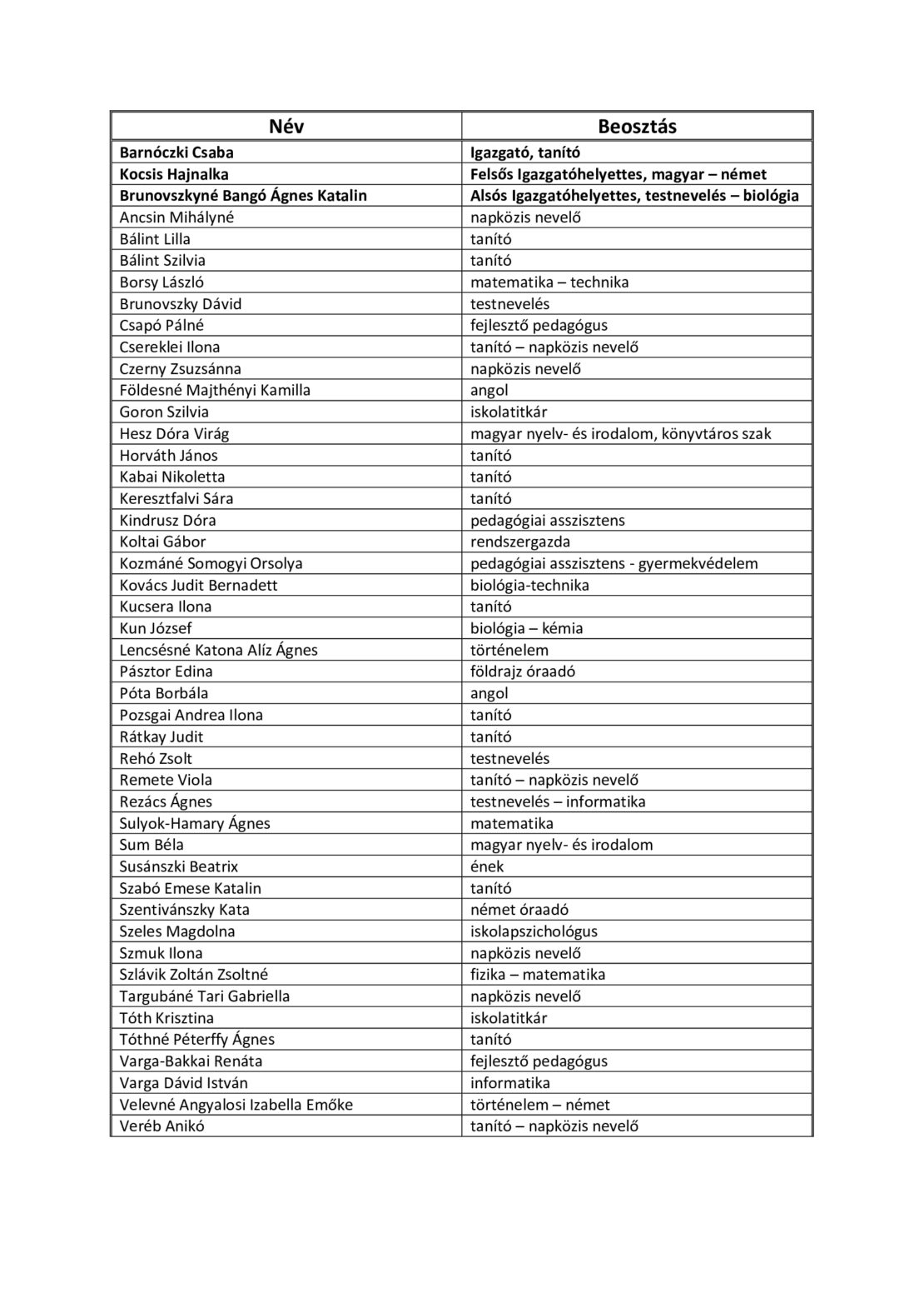 Pedagógusaink és munkatársaink