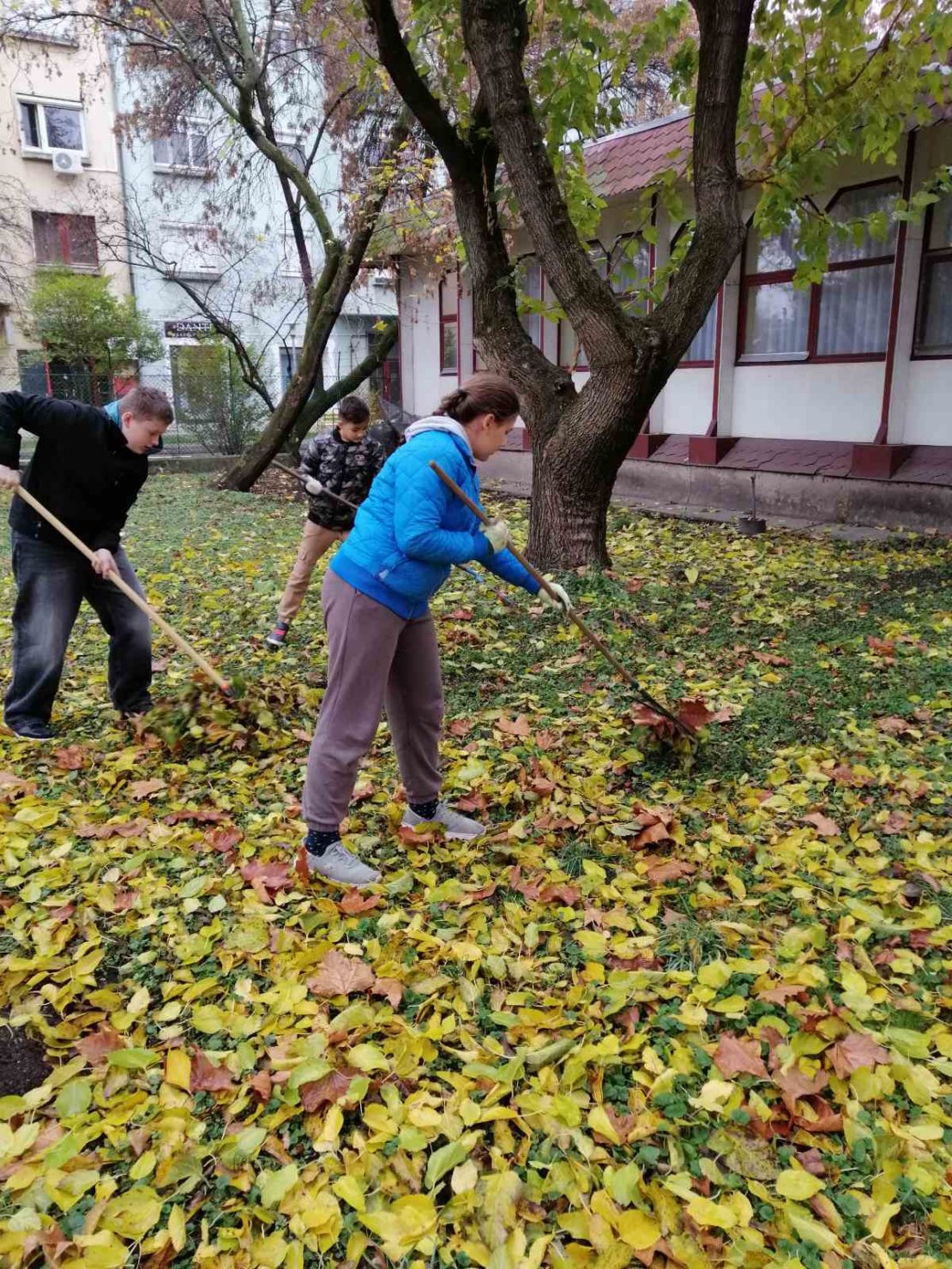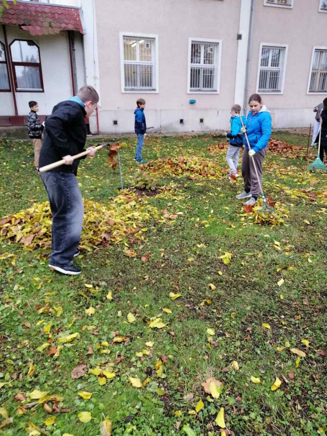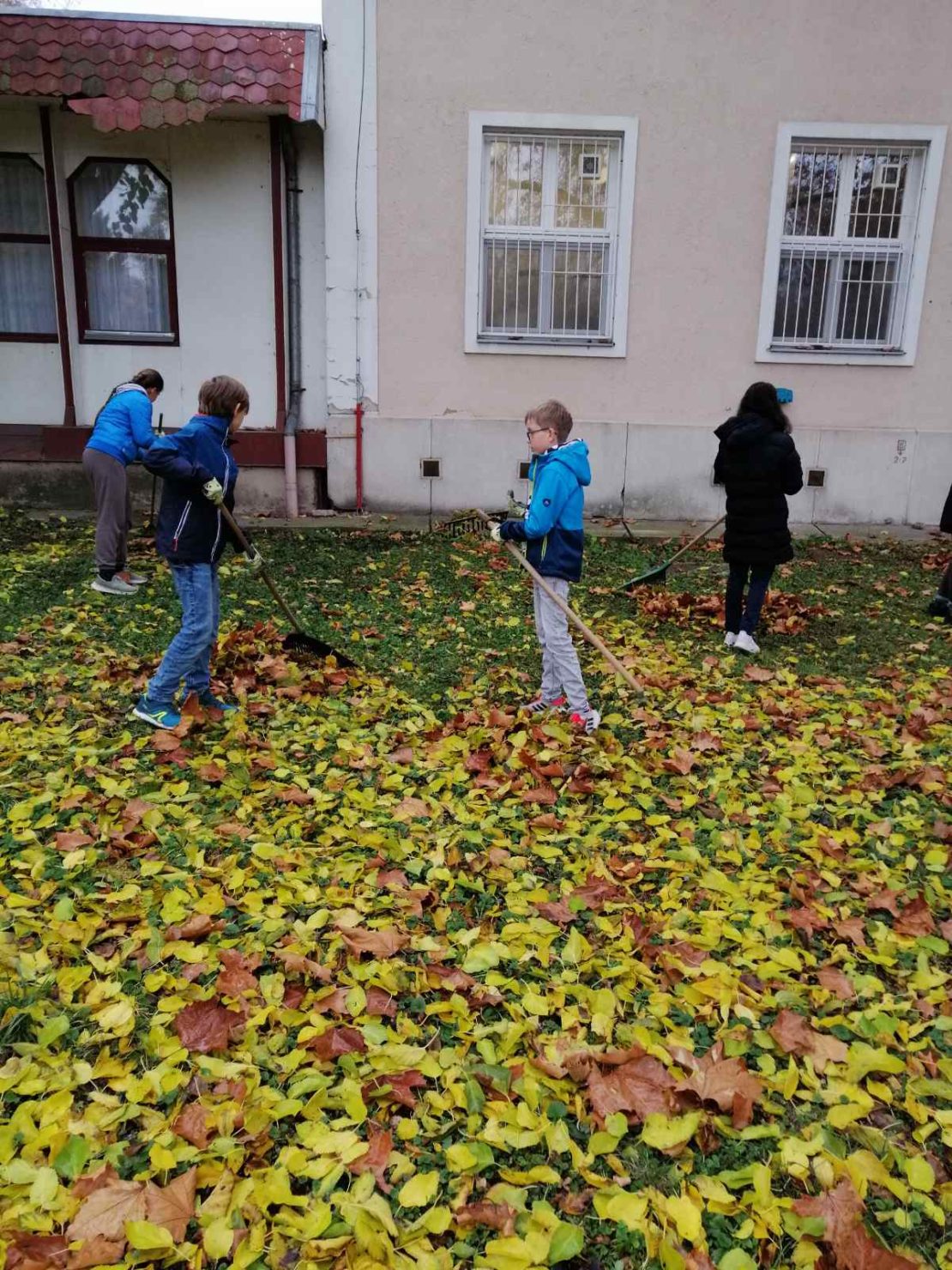 Az Ökoiskola program keretében a 6. osztályosok nagy örömmel vettek részt a lombgyűjtésben. (2025. november)